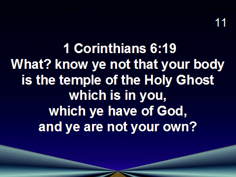 YOUNG PEOPLE, A CHILD OF GOD SHOULDN’T PUT DRUGS INTO A BODY THAT IS JOINED TO THE LORD.